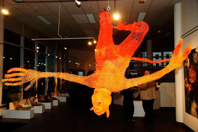 Grillage, tarlatane, peinture, matériaux sonores conçus et réalisés par le musicien